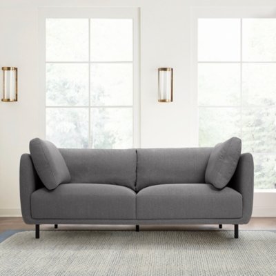 Embrace a plush and comfy destination with our Serenity fabric sofa with black metal legs. With clean lines and plush contours, our sofa presents a perfect combo of modern style and comfort. The couch is perched upon black metal legs to make your living space appear open and airy. It features a sheltering silhouette to create a cozy nook for resting and relaxation. Oversized pillows and a deep padded seat complete the cozy and inviting appeal of our sofa. It includes two plush cushions to offer endless comfort with a casual and elegant appeal. Perfect for movie nights or spending some quality time with friends and family, our sofa is ideal for your formal living room, home theater, den, or family room. It is available in a variety of colors and materials to create a couch tailored for your home. The Serenity fabric sofa comes in fossil gray or mauve velvet, or gray fabric with black metal legs. Armen Living