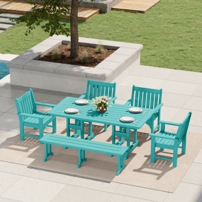 Westin Furniture Laguna Outdoor Dining Table and 4 Arm Chairs and Bench, Turquoise